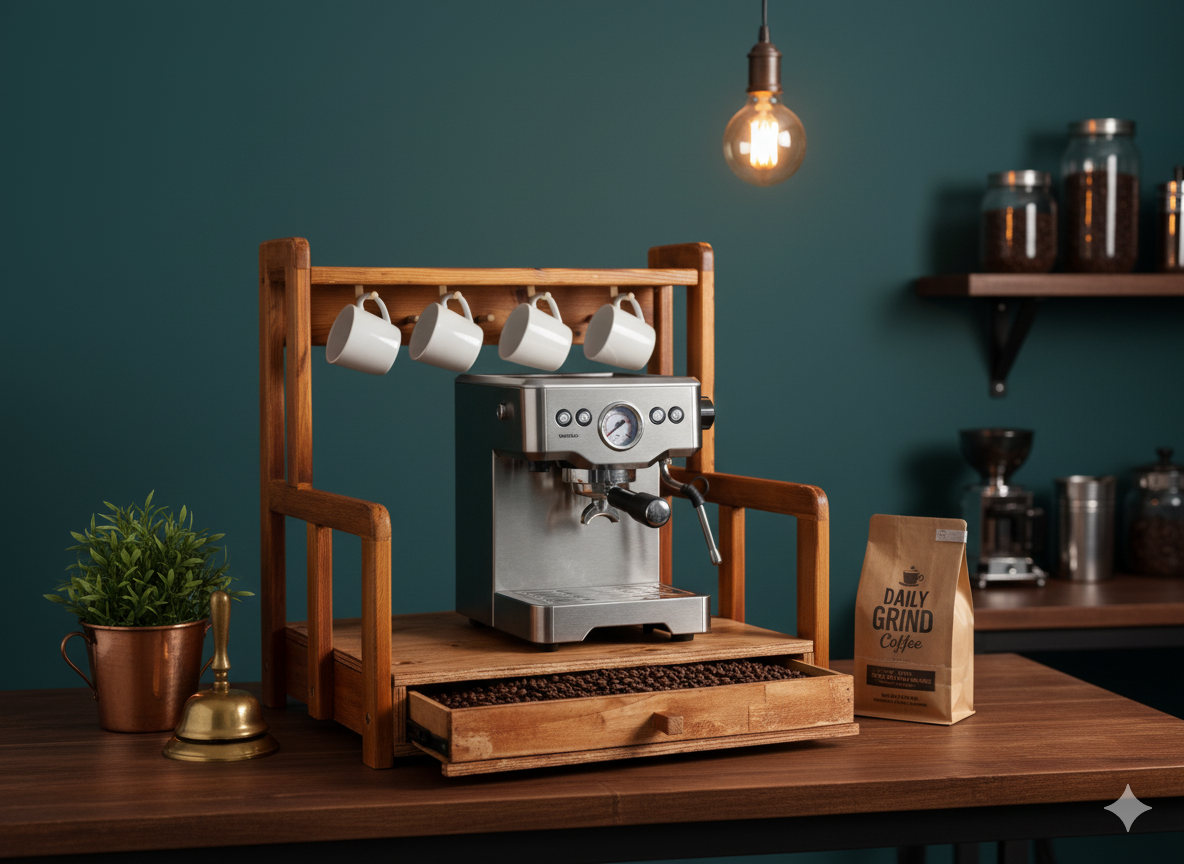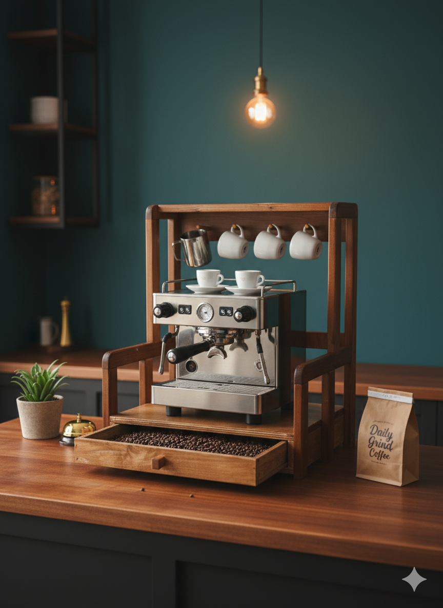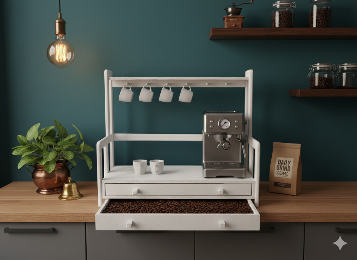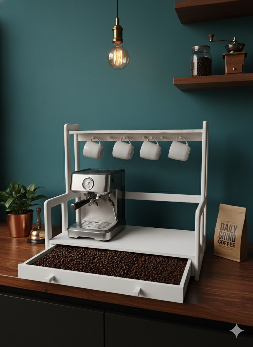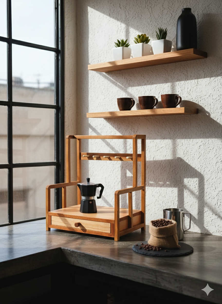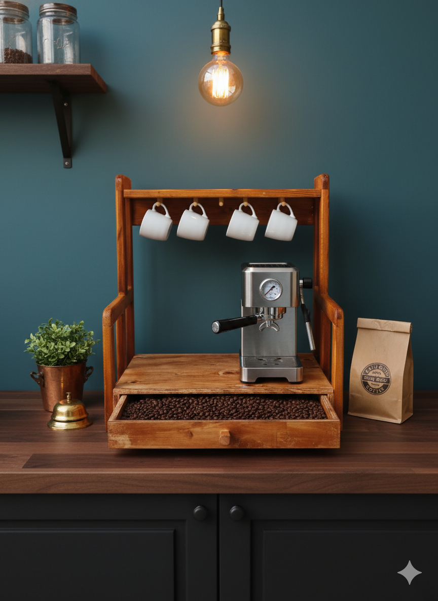 استند اسپرسو کشودار استند جا قهوه چوبی