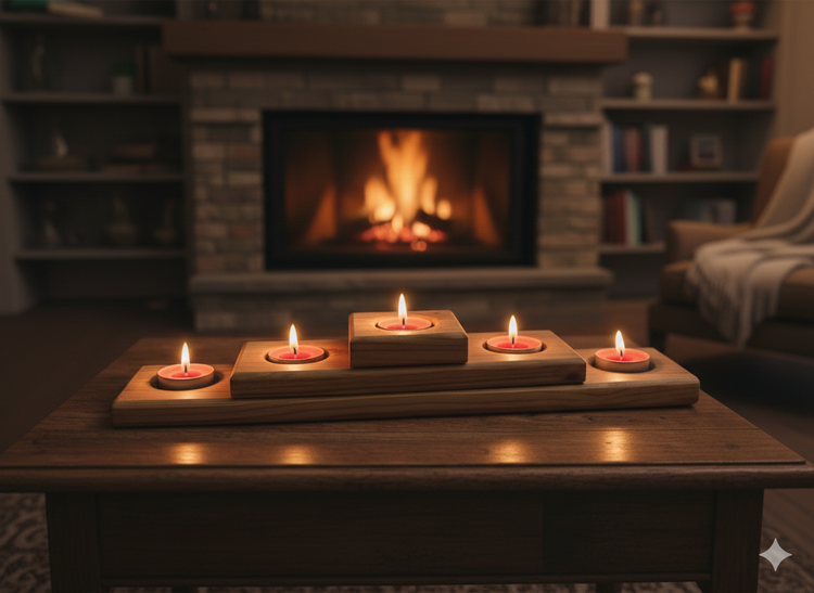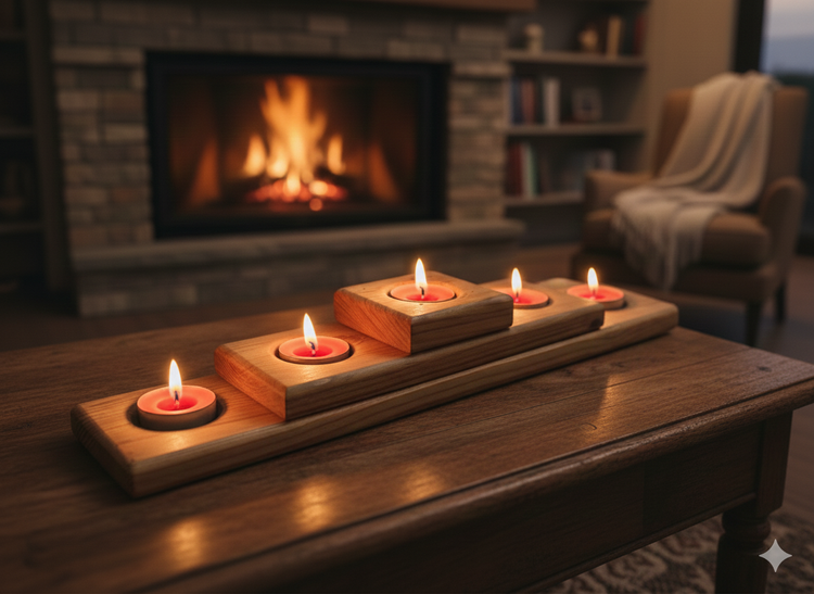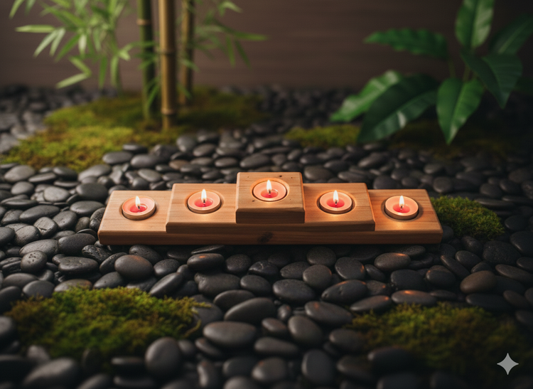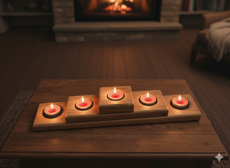 جا شمعی پله ای تمام چوب پنج تایی😍